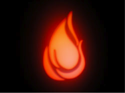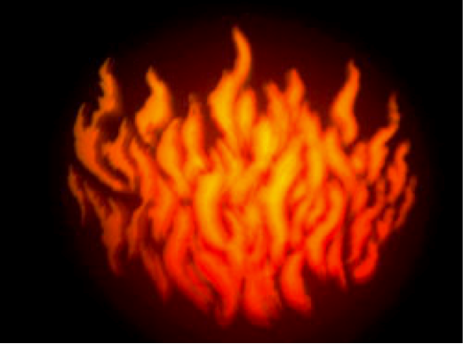 Achieving fire special effects can be simple to complex depending on the final effect desired. A simple way is just with a split gel similar to the one pictured above. It takes a little patience, few sheets of red, orange, and yellow gel, and a bit of tape. Add this to a flame pattern gobo and something like the following will be achieved: