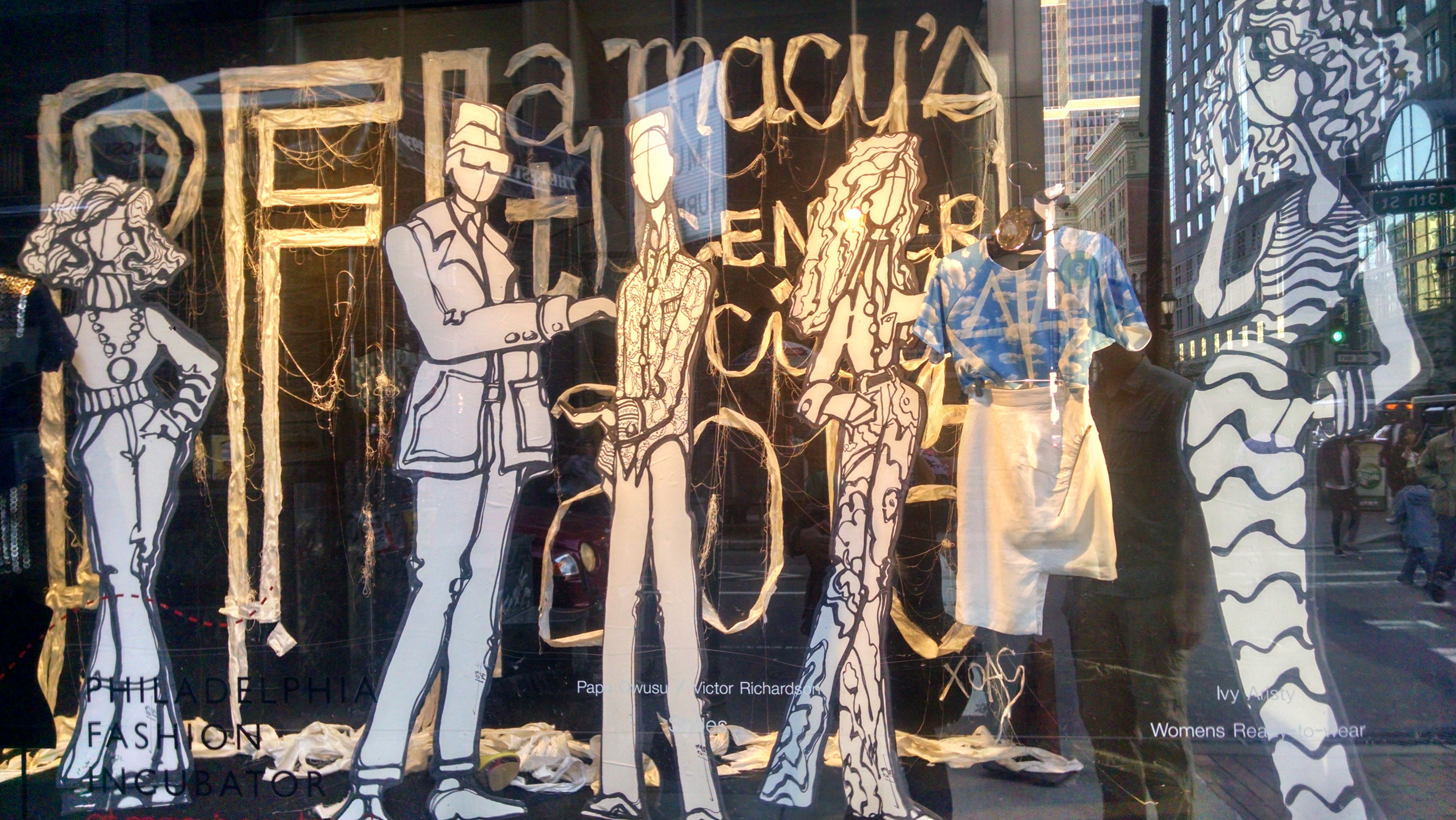 Theatrical gel filters have been used to temporarily tint otherwise clear windows. We’ve even shown you how to do this at home here. Other ways to use gel are to use scraps of the filters as part of mixed media art projects: birds, mosaics, flowers, and even fireworks. Order a swatch book today to start the brainstorming. Gaffer’s tape is another favorite. A few years ago, a major clothing retailer (often worn by the First Lady) used fluorescent gaffer’s tape in a seasonal window display. It was much easier for staff to lay out the tape in the designer’s diagrams, than to cut and then tape paper. Around the office we often use the last little bit on our gaff tape rolls to decorate presents (our newspaper wrapping skills are second to none). Now, ProPocket Spike Tape Packs are pre made sets of tape that are super handy to have around. Stuff a set in your pocket or gear bag and be ready to spike up the world.Gaff tape window display. Photo by StageSpot