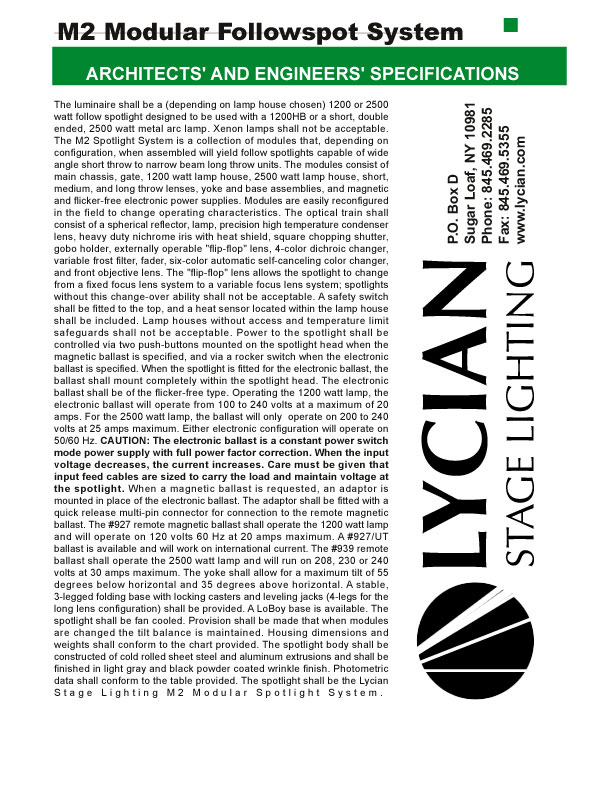 Lycian 2040 M2 Medium Throw Followspot Lycian 2040 M2 Medium Throw Followspot